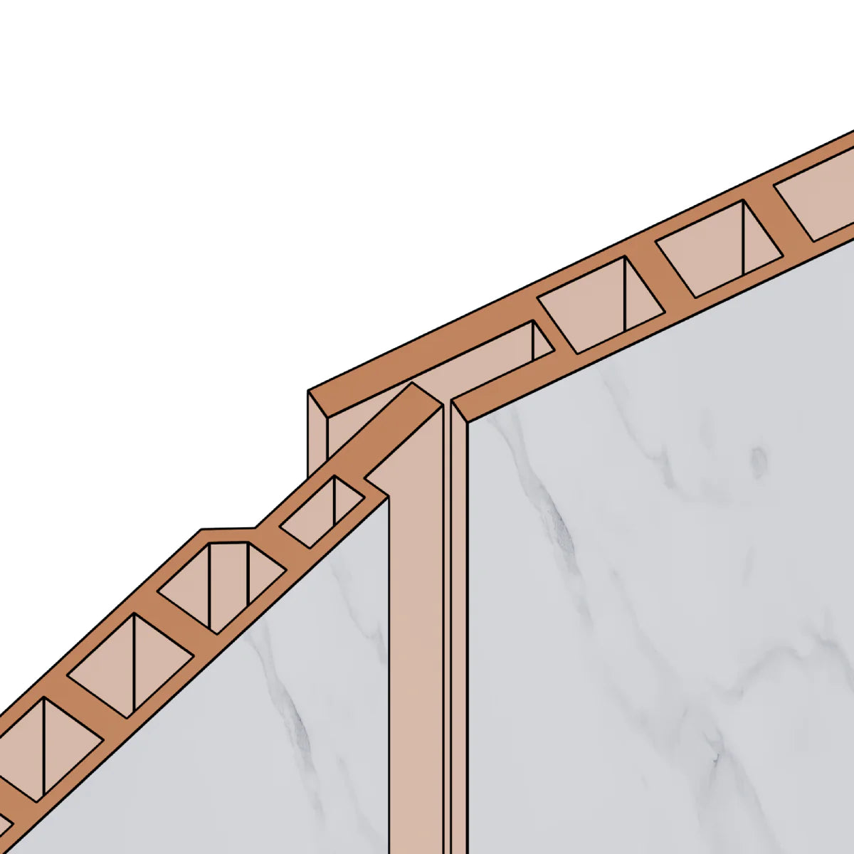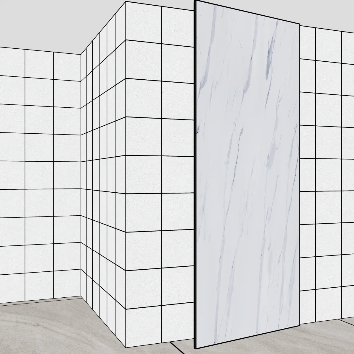 Our wet wall panels connect together side-by-side via tongue and groove, no need for connecting trim. This creates a waterproof barrier.
